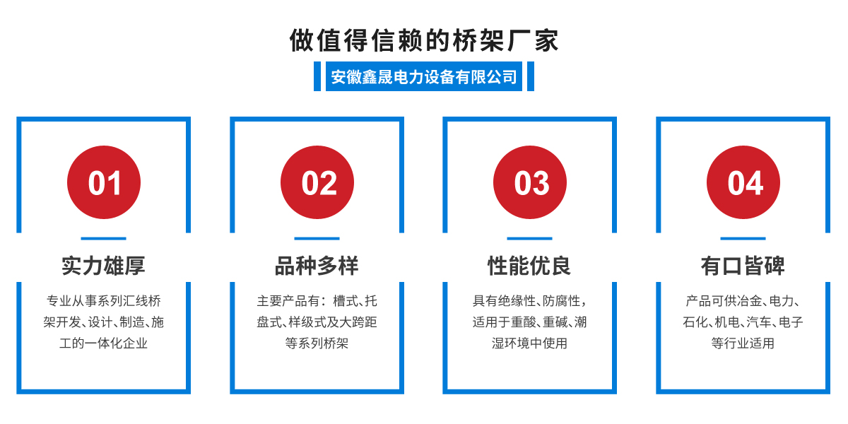 - 安徽鑫晟電力設(shè)備有限公司是專注從事系列匯線橋架開(kāi)發(fā)、設(shè)計(jì)、制造、施工的一體化企業(yè),主要產(chǎn)品有:槽式、托盤(pán)式、梯級(jí)式及大跨距等系列橋架。產(chǎn)品選用冷軋或熱軋鋼板井對(duì)...